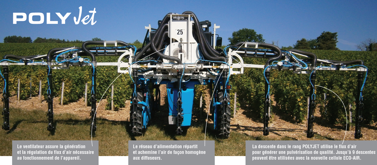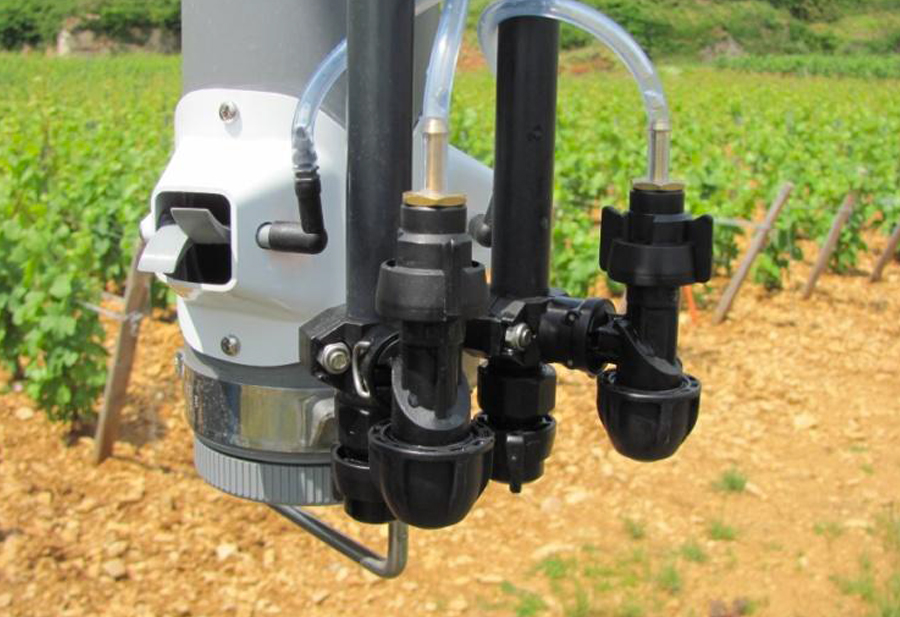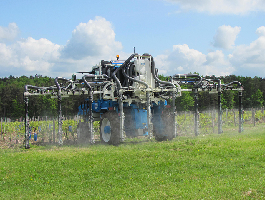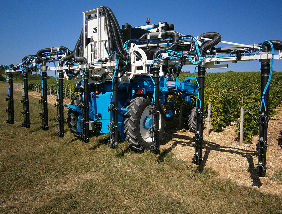 Un équipement de pulvérisation face par face conçu spécialement pour les vignes à haute densité ; les 3 technologies de pulvérisation sont réunies sur un seul appareil